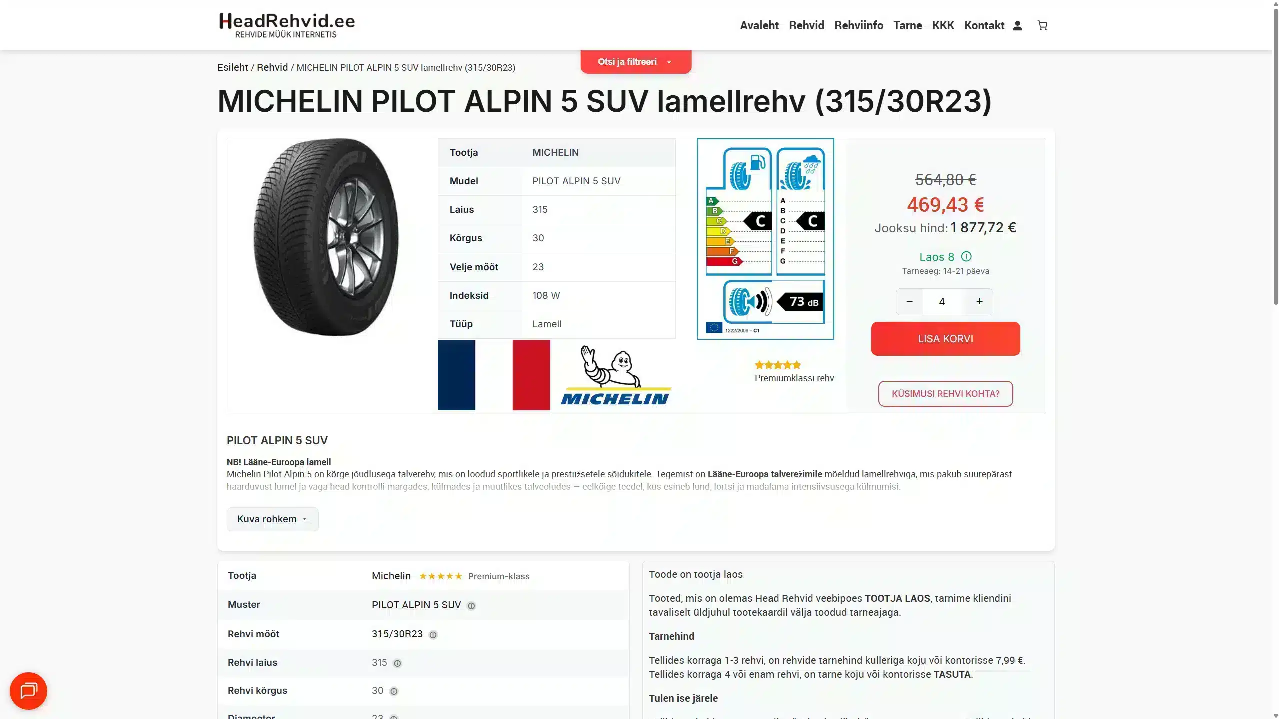 - Kohandatud kataloogi- ja tootevaated: Spetsiaalselt rehvipoele loodud kataloogivaat ja tootekaardid, mis näitavad kõiki olulisi tehnilisi andmeid (laius, kõrgus, diameeter, kiirusindeks, kandevõime jne) kasutajasõbralikul kujul koos lisainfoga.