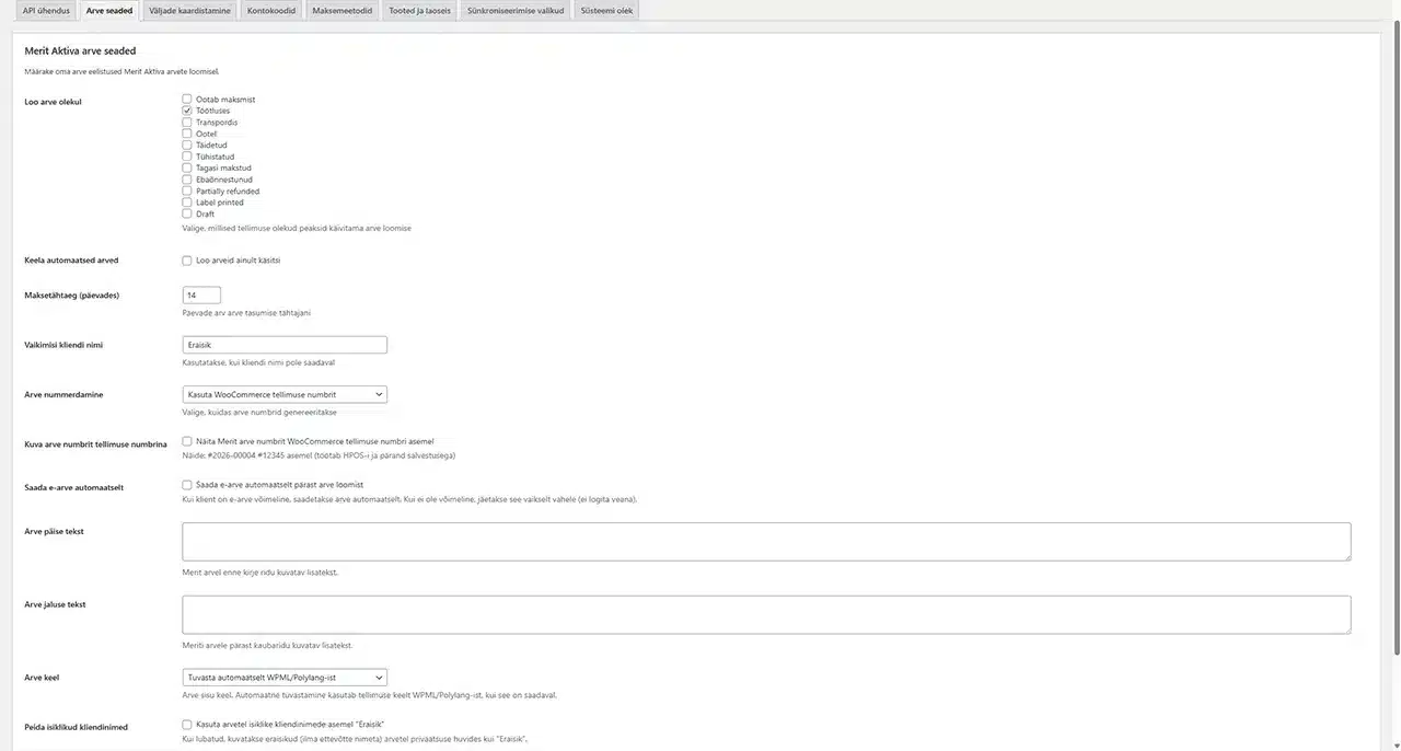 - Merit Aktiva arvenumbri kuvamine WooCommerce’i tellimuse numbrina