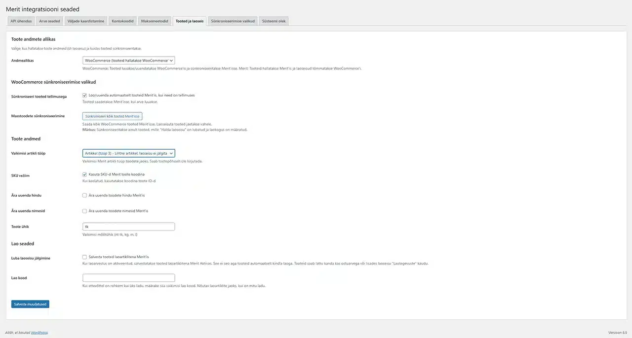 - Automaatne igapäevane laoseisu sünkroonimine Meritist (WP-Cron)