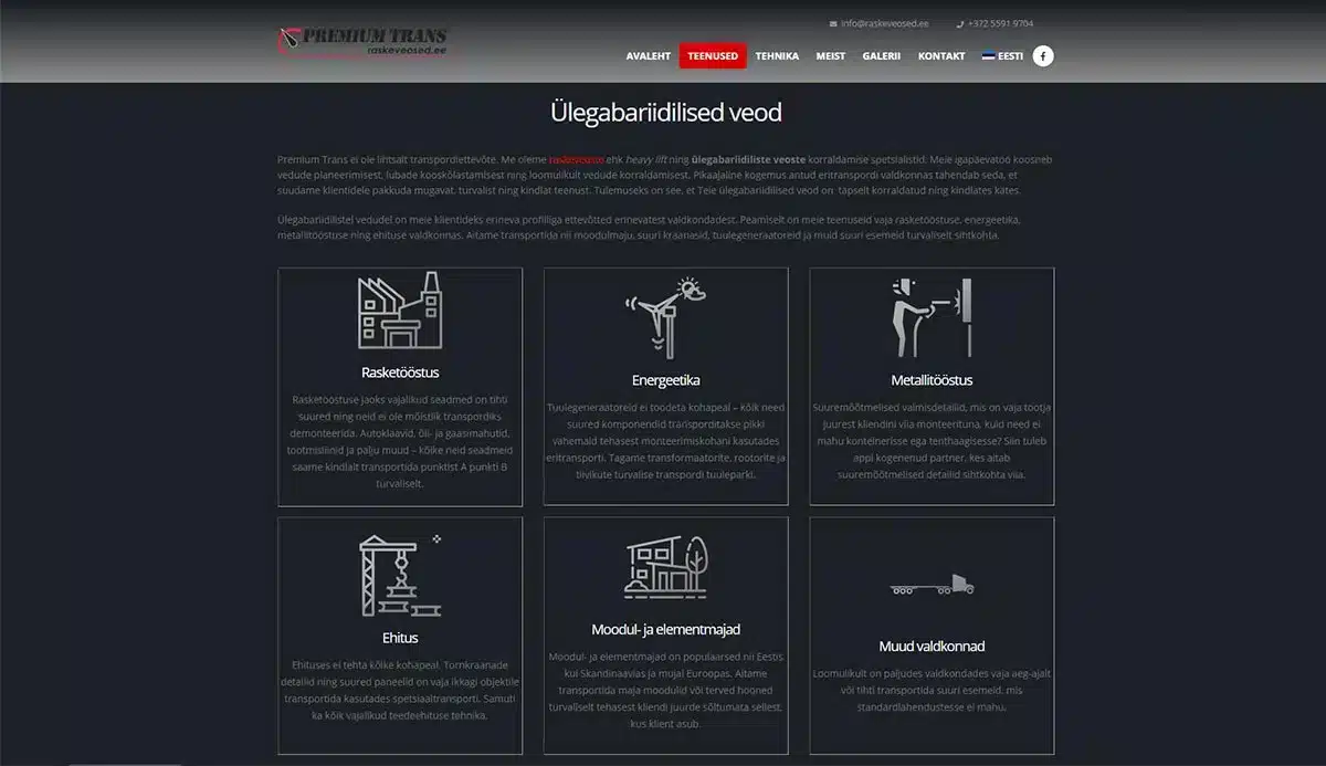 Premium Trans on transpordiettevõte, mille põhitegevuseks on rasketehnika, eritehnika ning ehitustehnika transport. Hundikuu Agentuuri ülesanne selle projekti raames oli ettevõttele uue veebilehe valmistamine. Kriteeriumis selle osas, sarnaselt ka paljude teiste projektide puhul – otsingumootorites parem väljatulek, et saaks uusi kliente juurde, mobiilisõbralikkus ning mitmekeelsus.